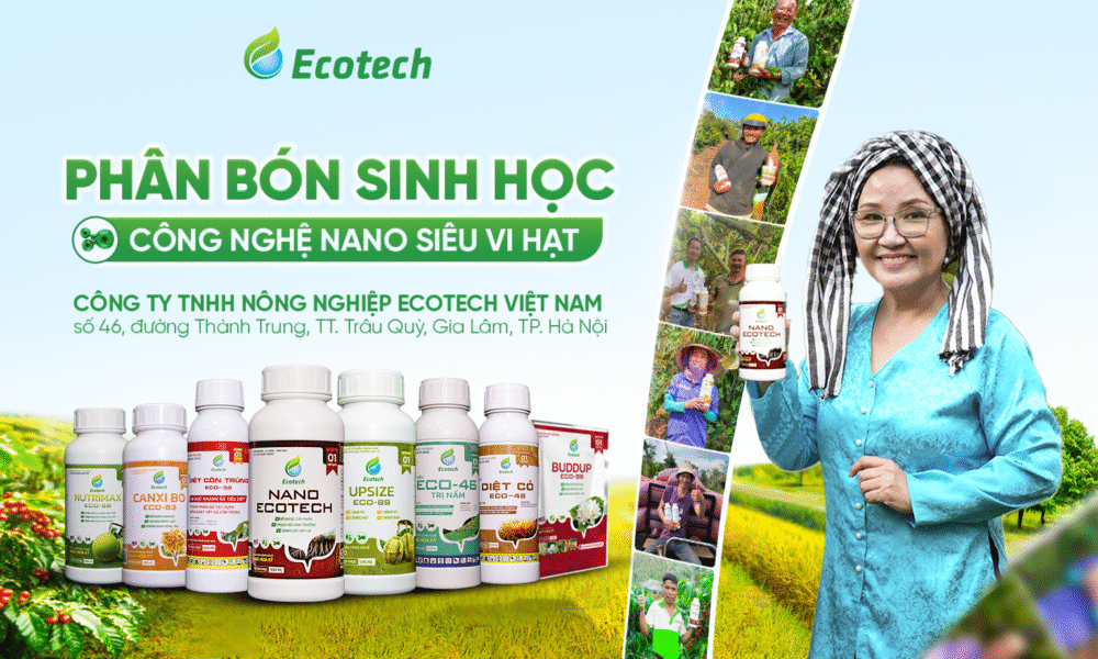 ECOTECH Việt Nam là doanh nghiệp tiên phong ứng dụng thành công công nghệ Nano siêu vi hạt chuẩn Hoa Kỳ vào quy trình sản xuất phân bón sinh học, đánh dấu một bước tiến quan trọng của ngành nông nghiệp công nghệ cao nội địa..